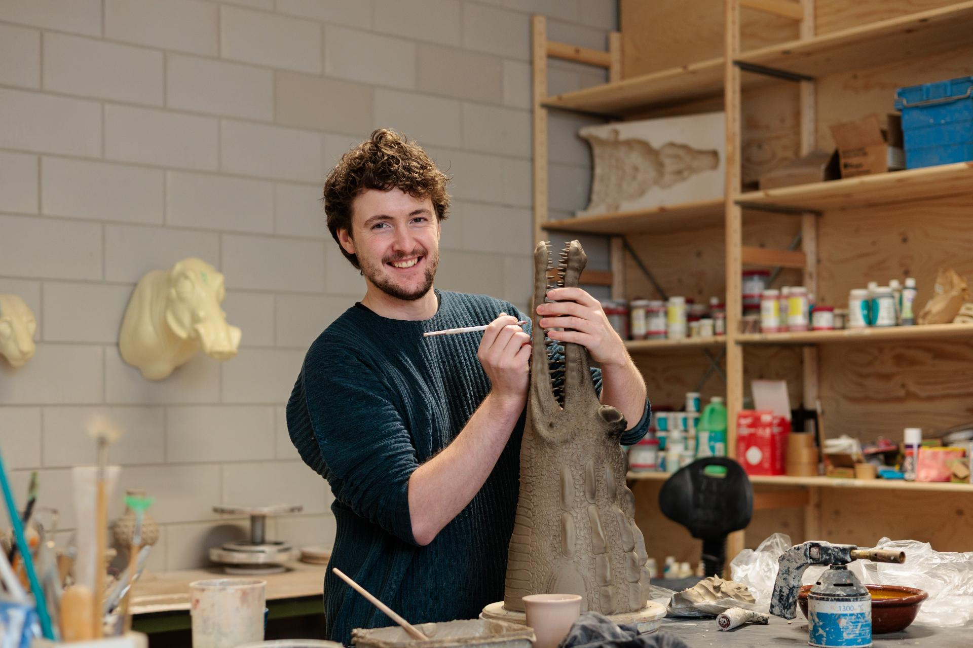 De Nederlandse kunstenaar Onno Theelen (1996) creëert keramische sculpturen die balanceren tussen folklore, fabel en fantasie. In zijn wereld spelen dieren de hoofdrol: dragers van menselijke eigenschappen, spiegels van gedrag en identiteit.