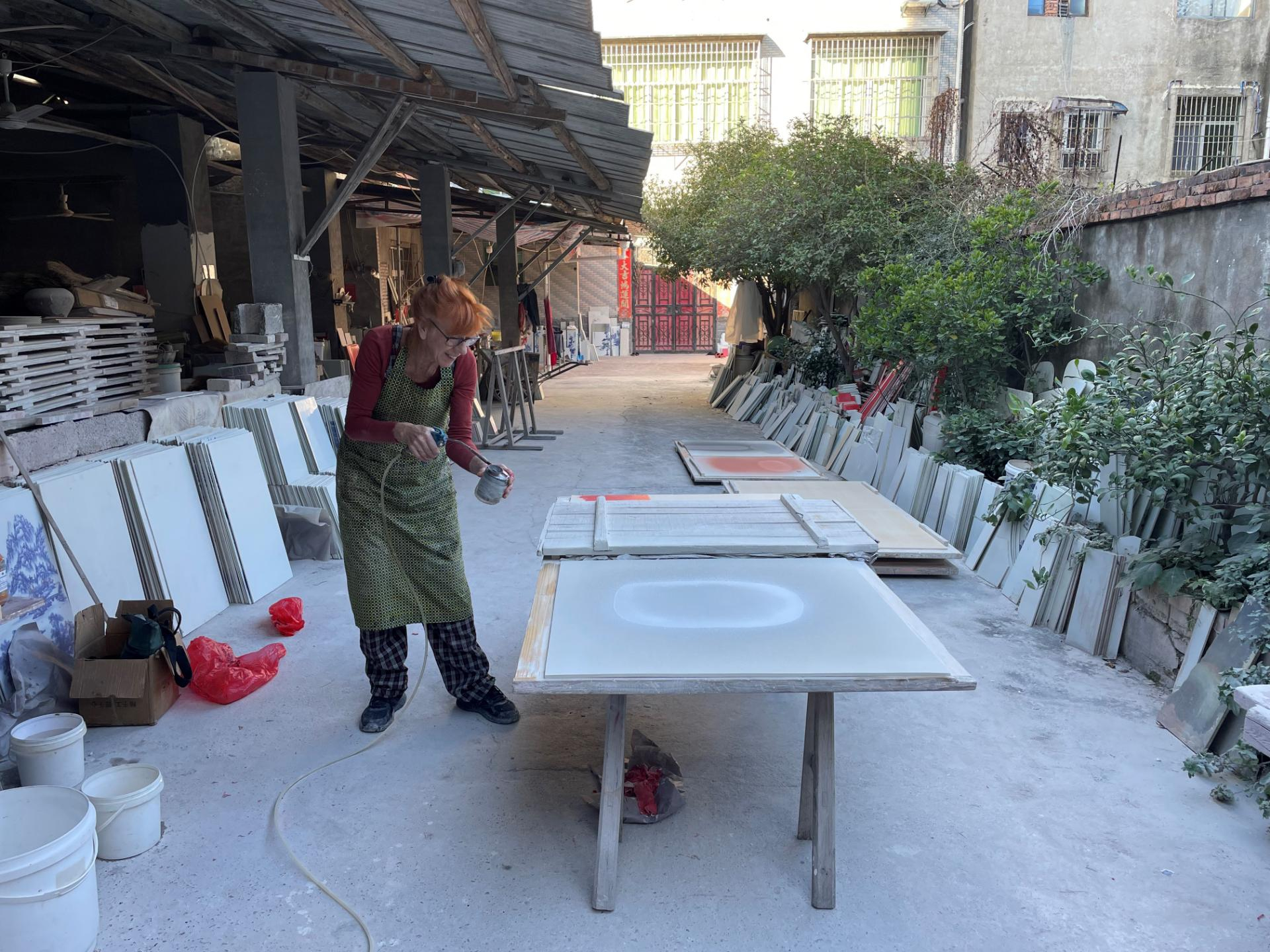 Sinds 2010 verblijft zij jaarlijks twee maanden in Jingdezhen, wereldwijd bekend als dé porseleinstad van China. In deze eeuwenoude keramiektraditie voelt zij zich thuis. De cultuur, de verfijnde kennis en de samenwerking met lokale ambachtslieden inspireren haar tot verstilde porseleinen beelden waarin techniek en bezieling samenkomen. Hier krijgt haar zoektocht naar essentie een nieuwe dimensie.
