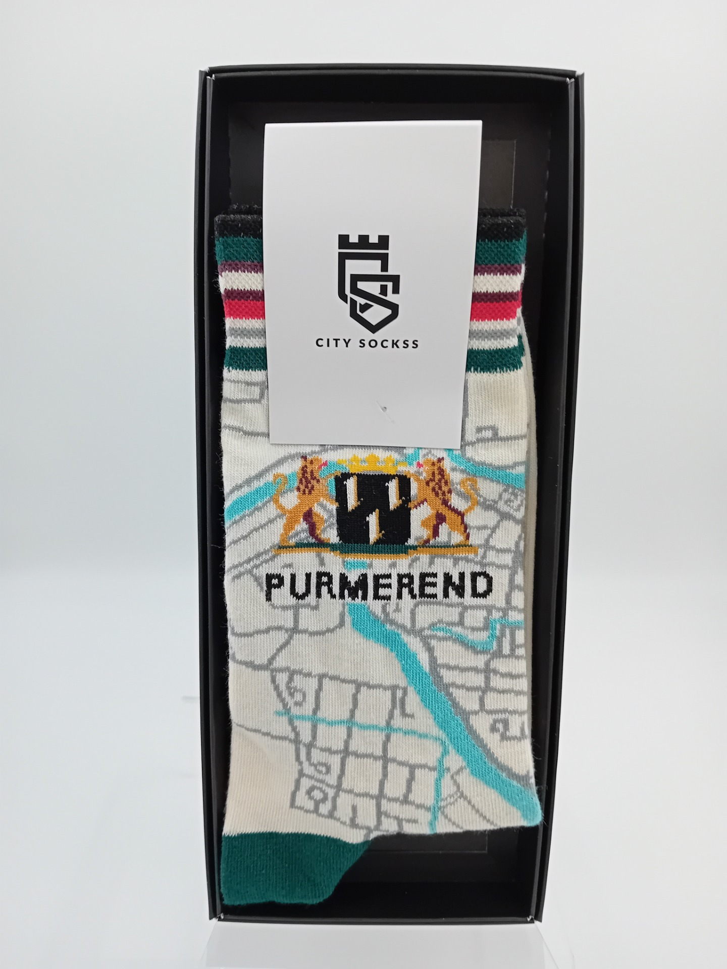 Sokken Purmerend Purmerend City Sockss met een afbeelding van de plattegrond van de Purmerendse binnenstad. Tevens voorzien van het Stadswapen van de stad. Een origineel cadeau uit Purmerend! Verkrijgbaar in één maat (one size) |