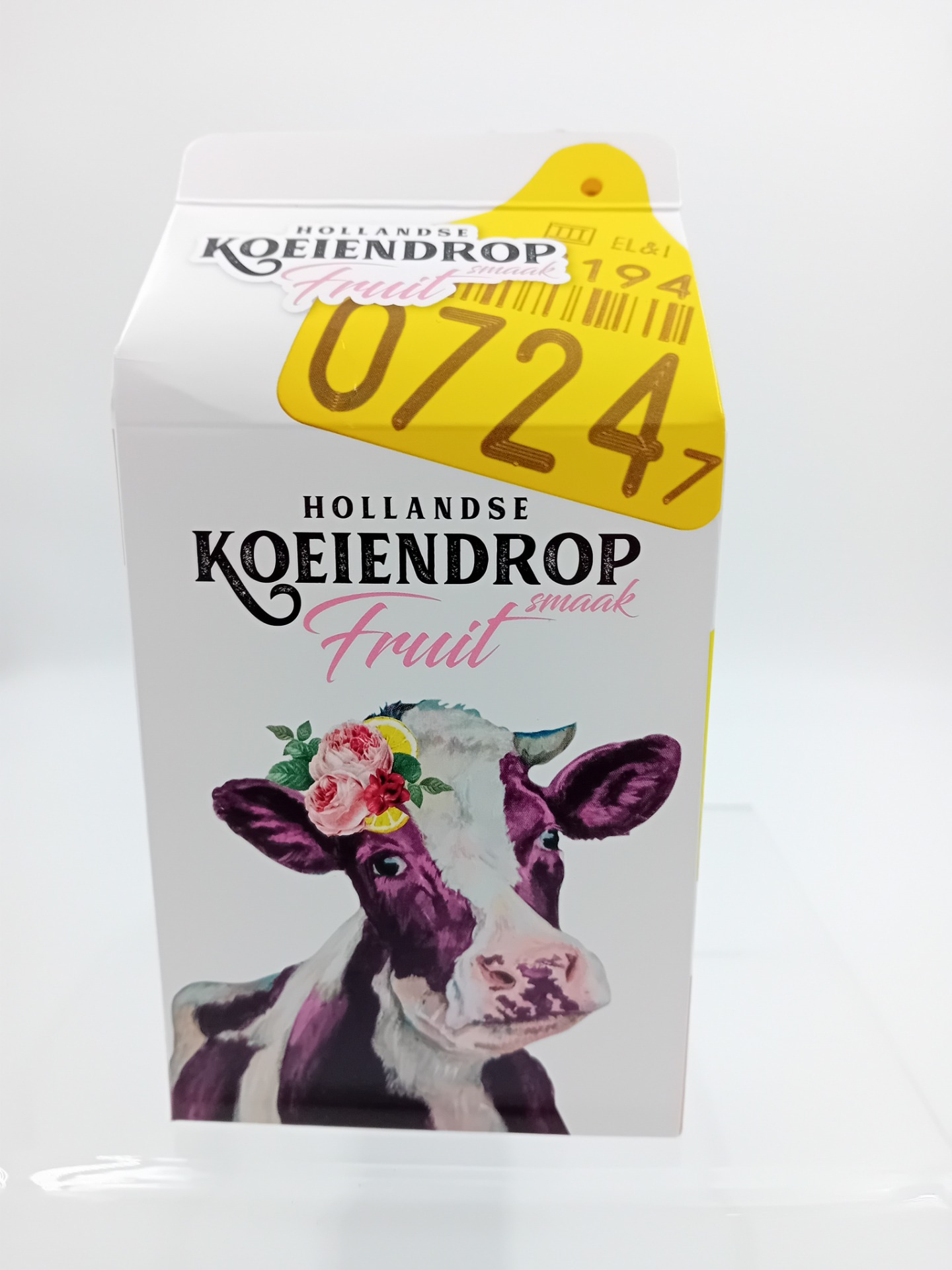 Koeiendrop Mini-melkpak met koeiendrop Mini-melkpak gevuld met Hollandse koeiendrop. Er zijn drie smaken: zoet, zout of fruit. Geef in de mail met uw bestelling aan welke smaak u wenst. Ingrediënten: suiker, glucosestroop, gemodificeerd aardappelzetmeel, melasse, zoethoutwortelextract, salmiakzout, kleurstof(E153), natuurlijke aroma's, glansolie (carnaubawas). Inhoud: 200 gram. |