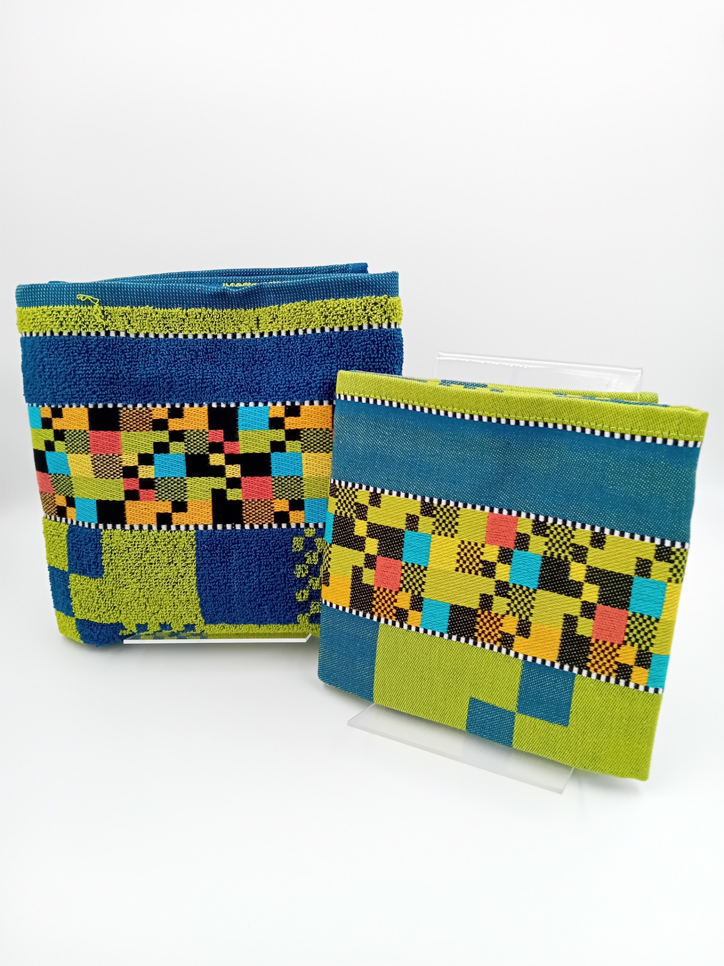 Keukensets van Mariëtte Wolbert Mariëtte Wolbert uit Purmerend heeft jarenlang ervaring in het ontwerpen van m.n. huishoudtextiel. Haar ontwerpen hebben een herkenbare signatuur en zijn inmiddels wereldberoemd. Haar keukentextiel is te vinden in de collecties van Elias, Bunzlau Castle en in het Rijksmuseum. Ze heeft al verschillende keren typisch Nederlandse elementen verwerkt in haar ontwerpen. Werk van Mariëtte is nationaal en internationaal in verschillende musea en galeries tentoongesteld en heeft diverse onderscheidingen gekregen. Recent zijn ze aangekocht voor de collectie van Het Stedelijk Museum in Amsterdam en door het Textielmuseum Tilburg. Baan-Brekend De Amsterdamse School-stijl was de inspiratiebron voor deze grafische, abstracte keukenset. De keukenset bestaat uit een thee- en een keukendoek. Theedoek 65x65 cm 100% katoen. Keukendoek 60x60 cm 100% katoen. Gefabriceerd in Europa. |